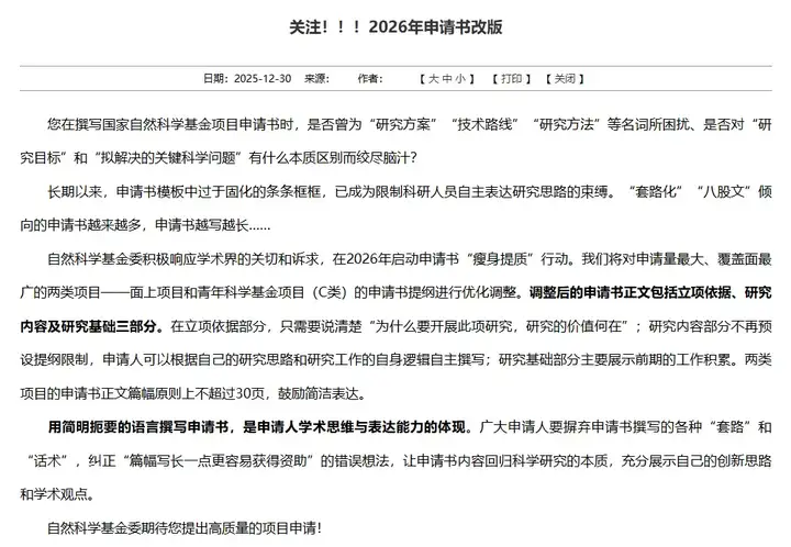 2026年国自然申请书"瘦身提质"的消息一出来,科研圈瞬间炸开了锅。