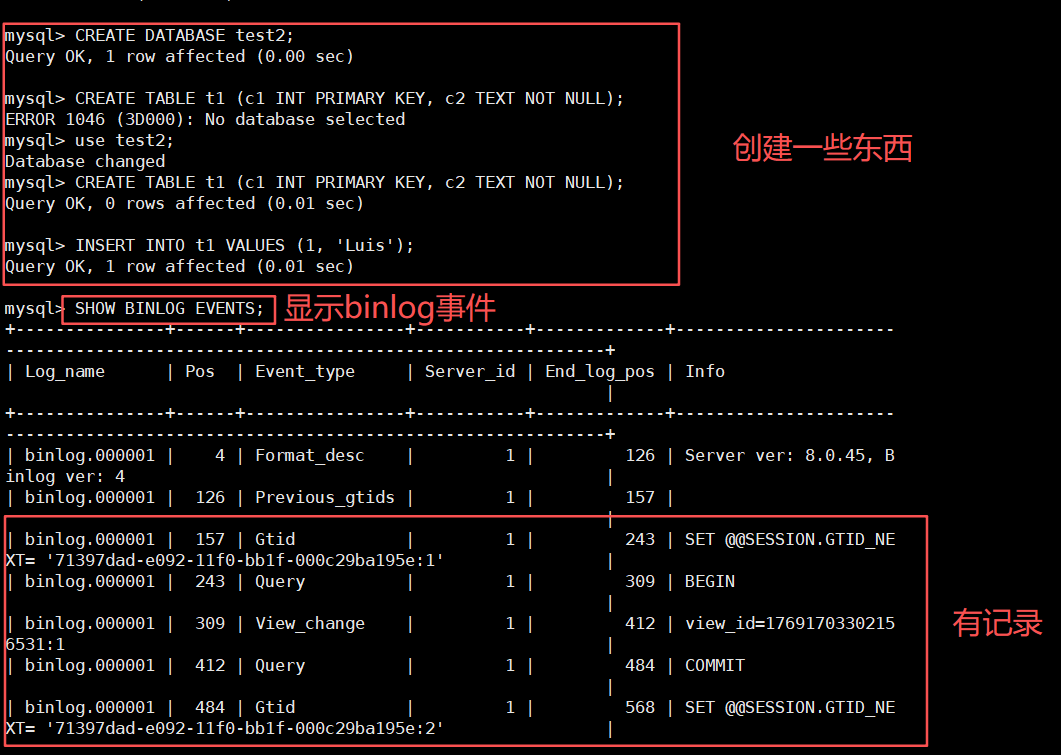SHOW BINLOG EVENTS;