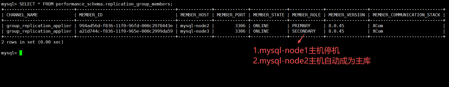 SELECT * FROM performance_schema.replication_group_members;