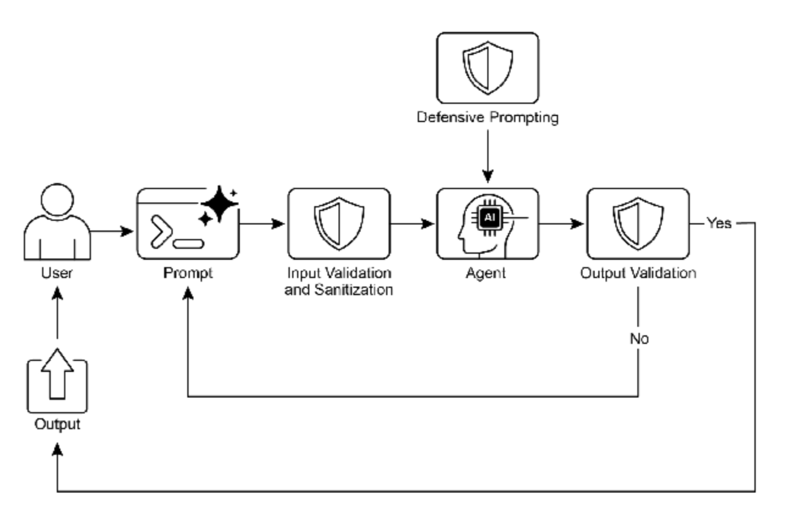 1、防御深度:实现输入验证、意图识别、输出过滤等多层防护