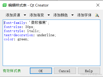 styleSheet 是 Qt 的 "CSS",支持通过 CSS 语法设置控件的背景色、边框、字体、间距等样式,是控件美化的终极方案,前端开发者可快速上手。