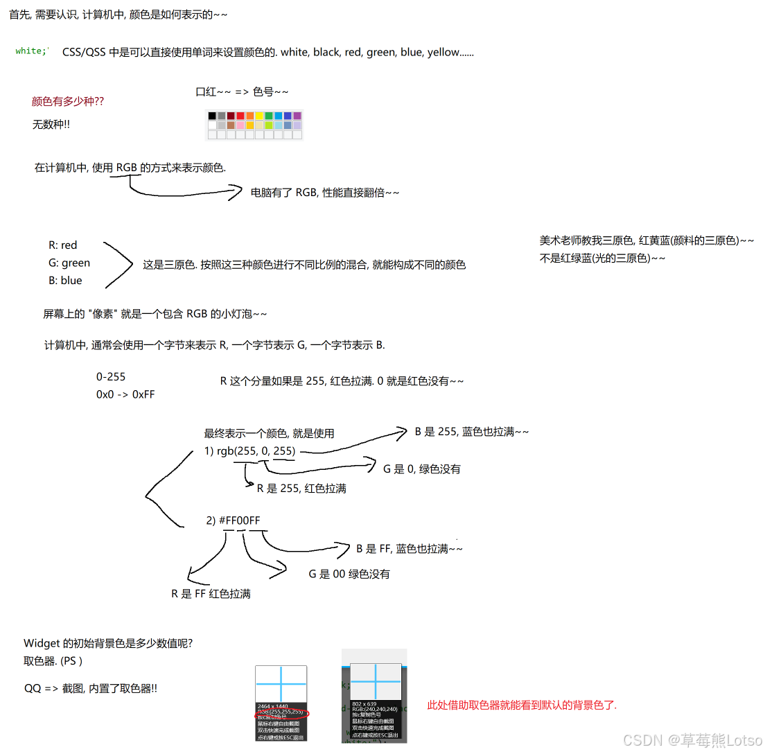 - 颜色说明:可通过在线调色板或者qq截图等操作获取更多颜色值。