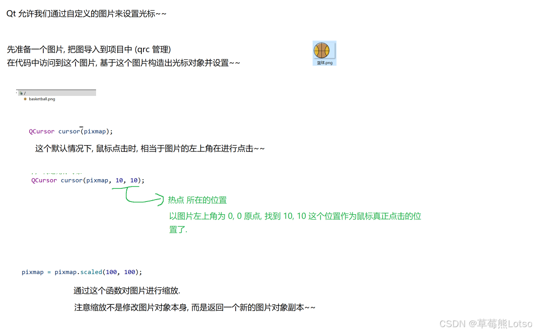 - 效果:鼠标在窗口内显示为自定义图片,点击时以 "热点" 位置为准,这里光标截图显示不出来,就不展示了。