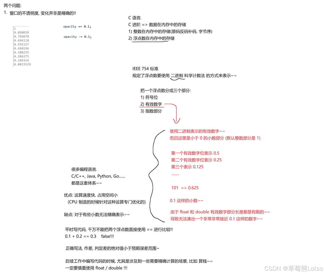 float类型存在精度误差(如 1.0 - 0.1 ≠ 0.9),无需额外处理,日常场景可忽略。