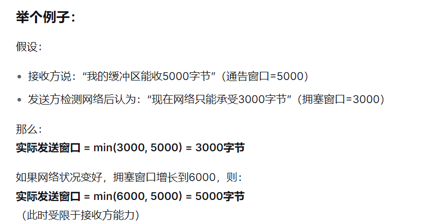 发送窗口 = min(拥塞窗口, 接收方通告窗口)