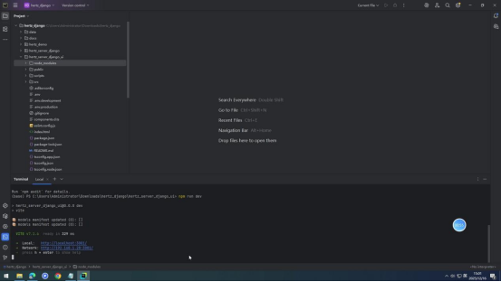 保持终端在项目根目录,执行服务启动命令:npm run dev。