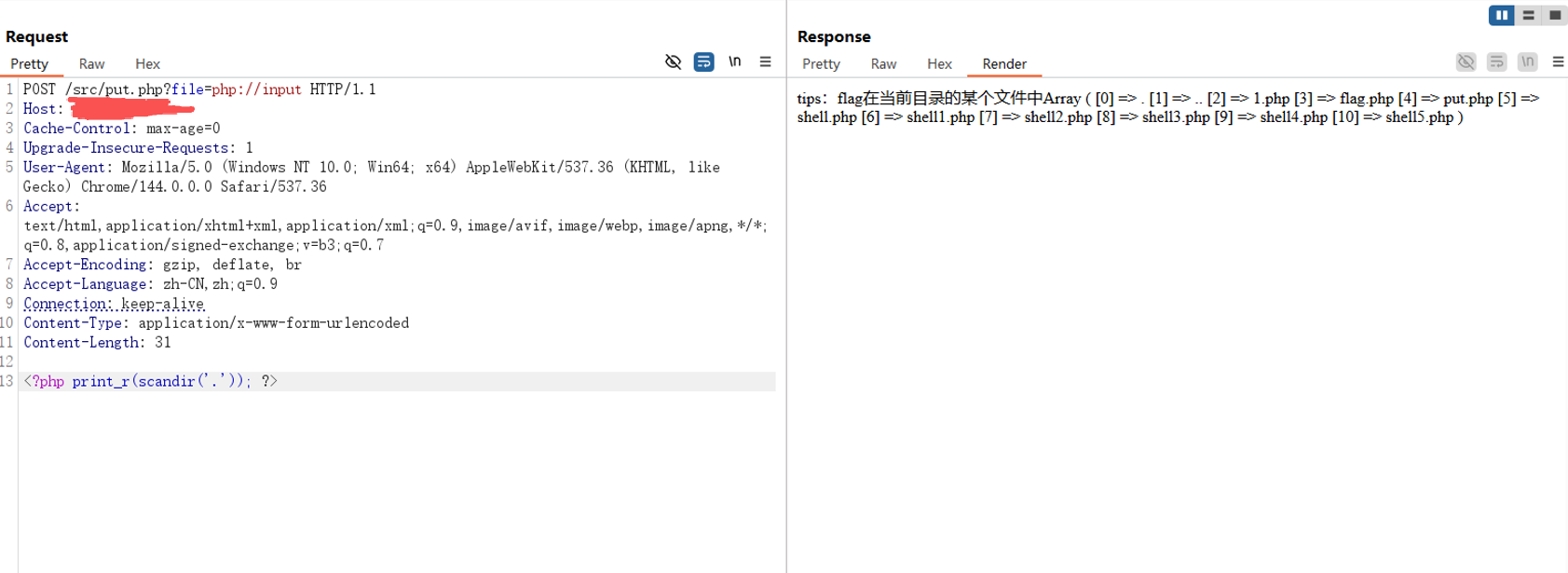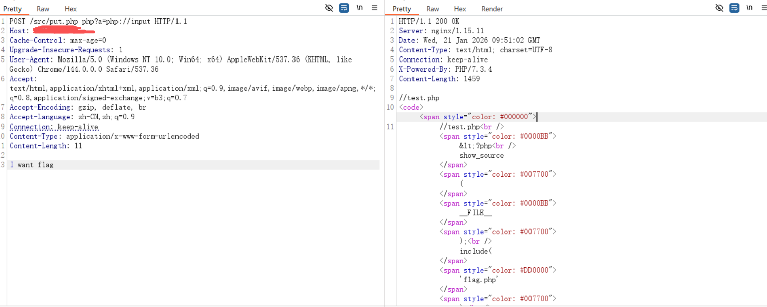 可以访问请求的原始数据的只读流,将post请求的数据当作php代码执行。当传入的参数作为文件名打开时,可以将参数设为php://input,同时post想设置的文件内容,php执行时会将post内容当作文件内容。从而导致任意代码执行。