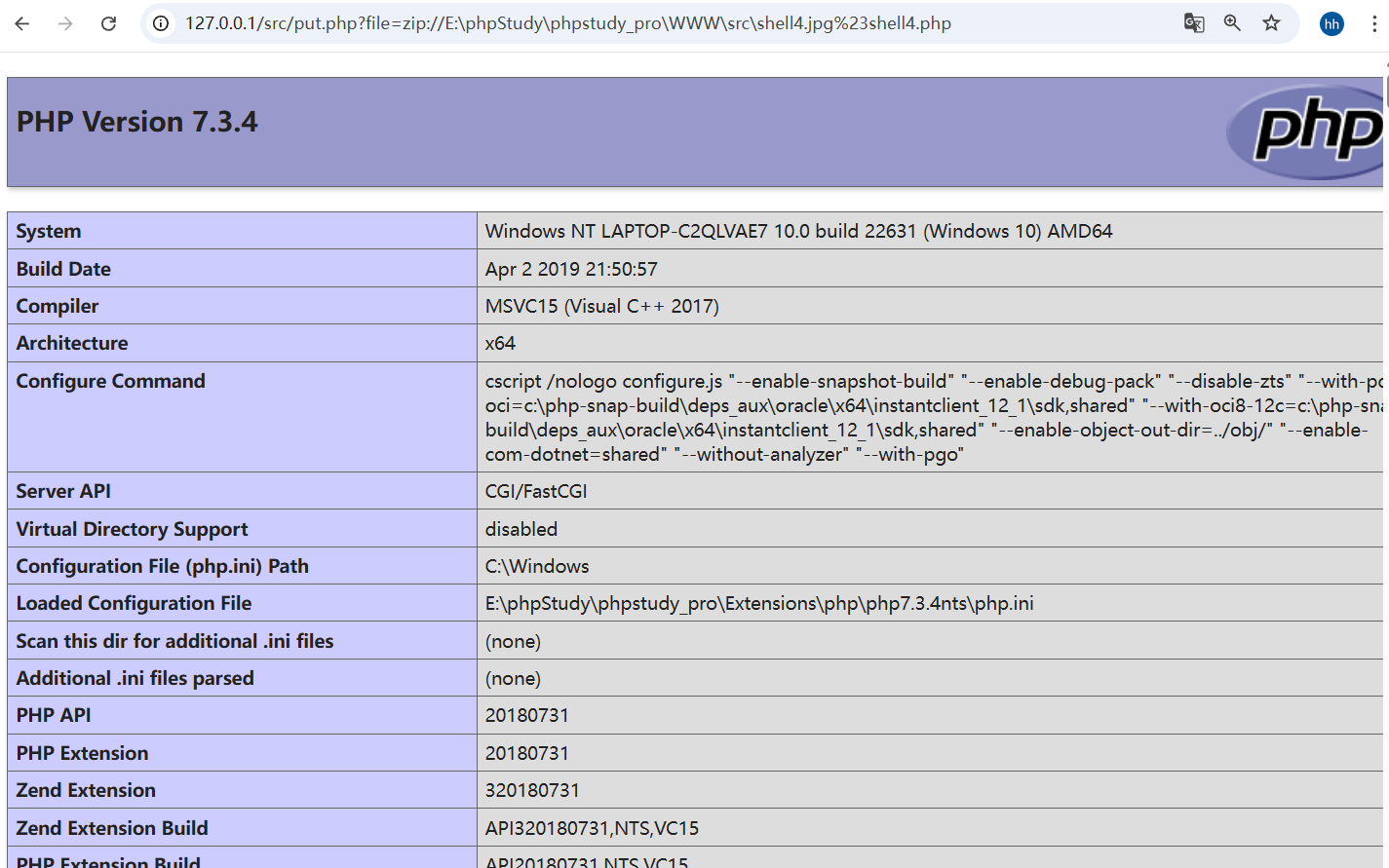 可以访问压缩包里面的文件。当它与包含函数结合时,zip://流会被当作php文件执行。从而实现任意代码执行。
