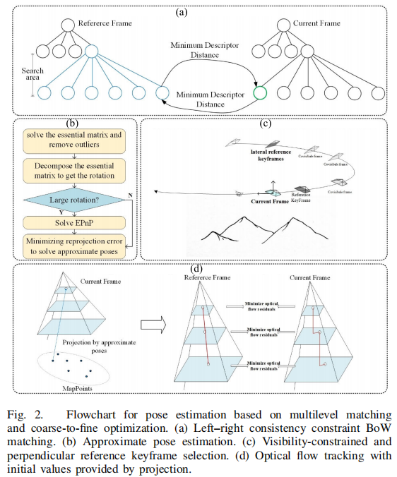 。预训练 BoW 树的词典规模根据大尺寸影像特征分布特性优化,确保子空间划分的合理性; - 左右一致性验证:要求参考关键帧的地图点