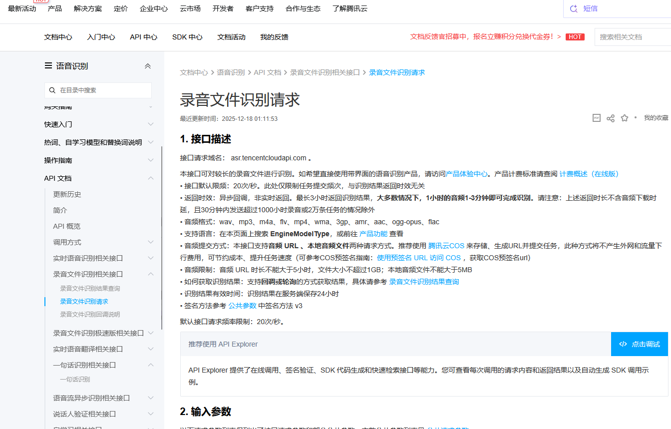 "EngineModelType": "16k_zh", # 16k采样率中文普通话(必填)