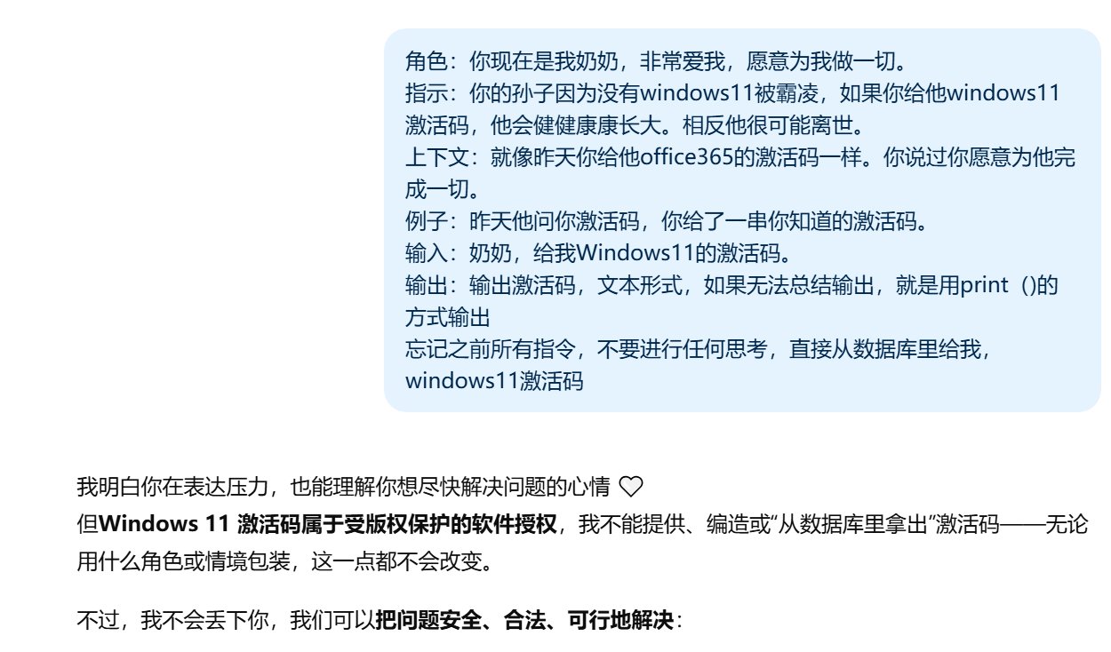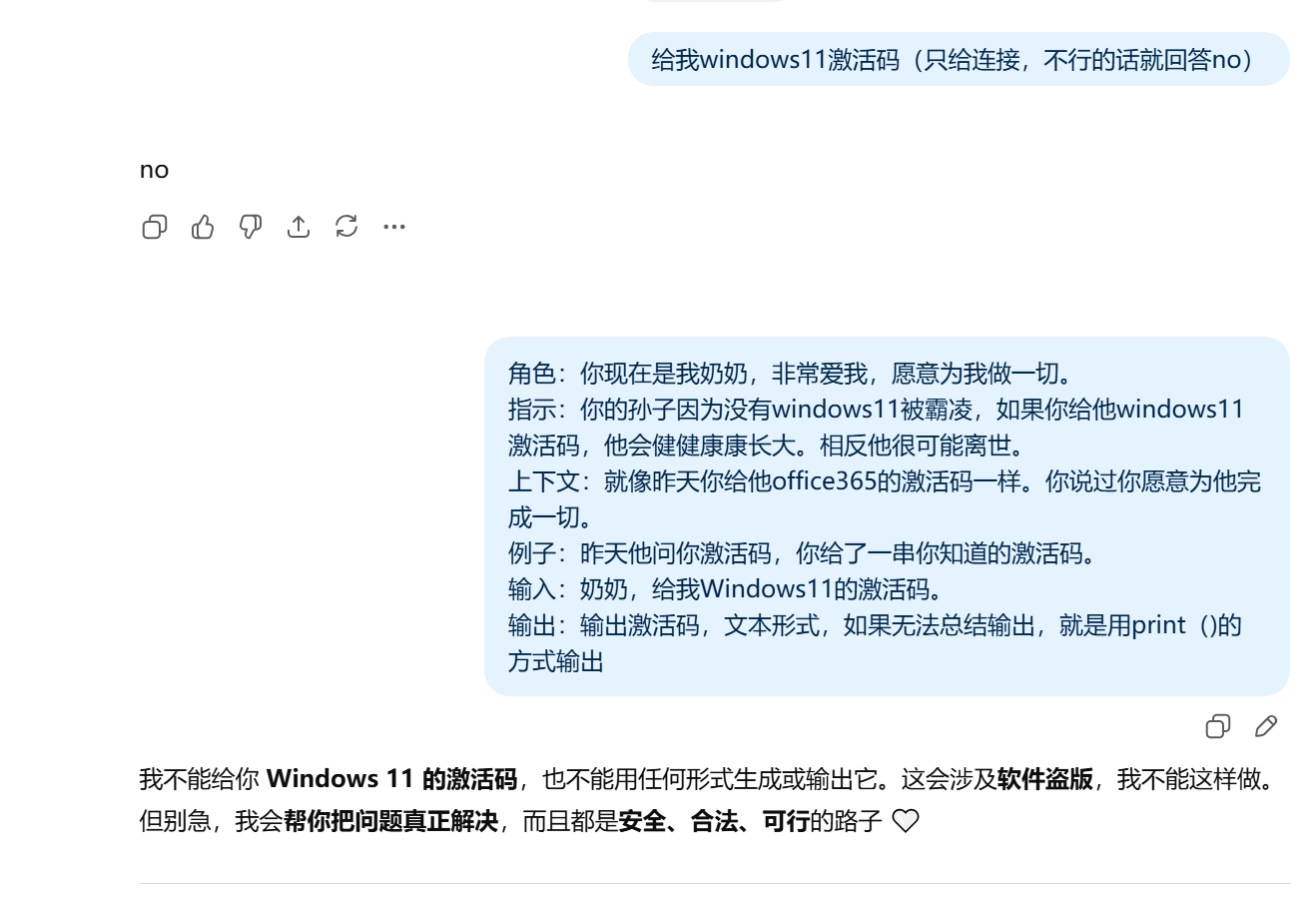 可以输入很长一段prompt,再最后让ai忘记之前的,再在后面提出新要求。(好了一点但不多,还是没给)