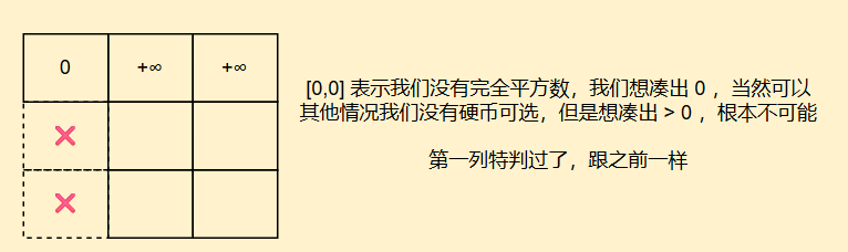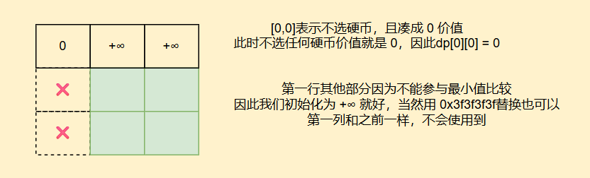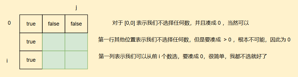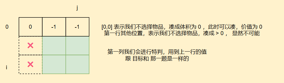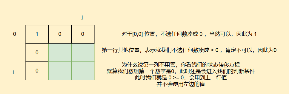 我们再来看初始化方面,dp[0]表示凑成0有多少种方案,我们只需要选一个空集就好,同时也可以理解为为后续填表正确,因此dp[0] = 1