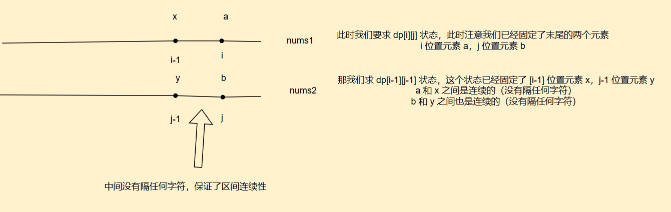 //此时两个公共子串的结尾字符已经相同,仅需在[0,i-1]和[0,j-1]区间内寻找最长公共子序列即可