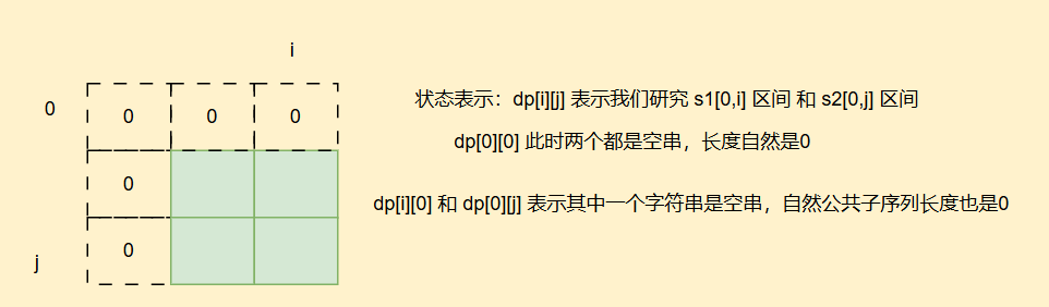 [0,i]区间进行研究,选取第二个字符串的[0,j]区间进行研究 - 根据题目要求来确定我们的状态表示