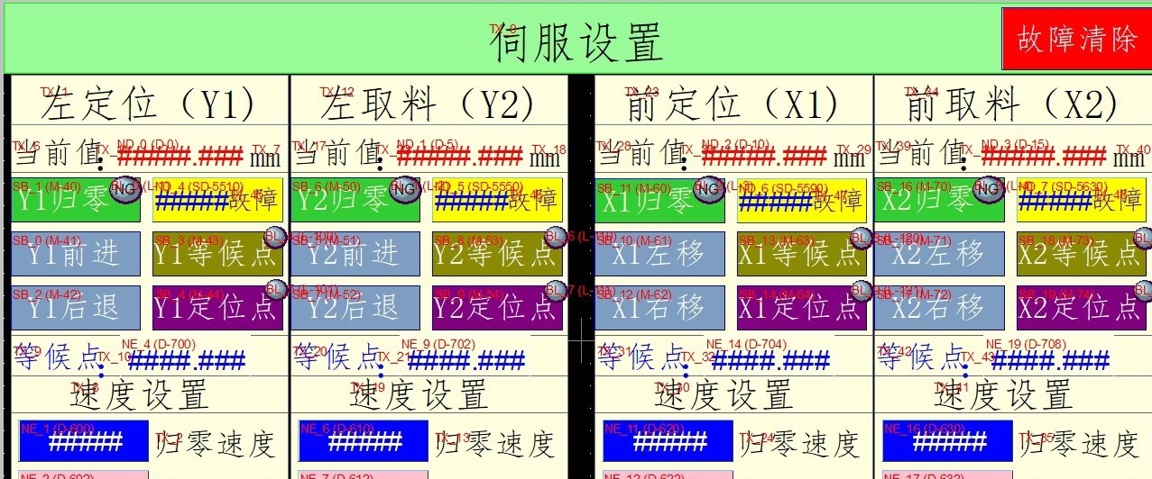 车间新到的四轴定位设备调试完成,趁着手还热乎,把项目里的干货整理出来。这套系统用FX5U-64MT控制四个MR-JE-20A伺服,威纶TK8071IP触摸屏做交互,咱们直接拆解程序架构。
