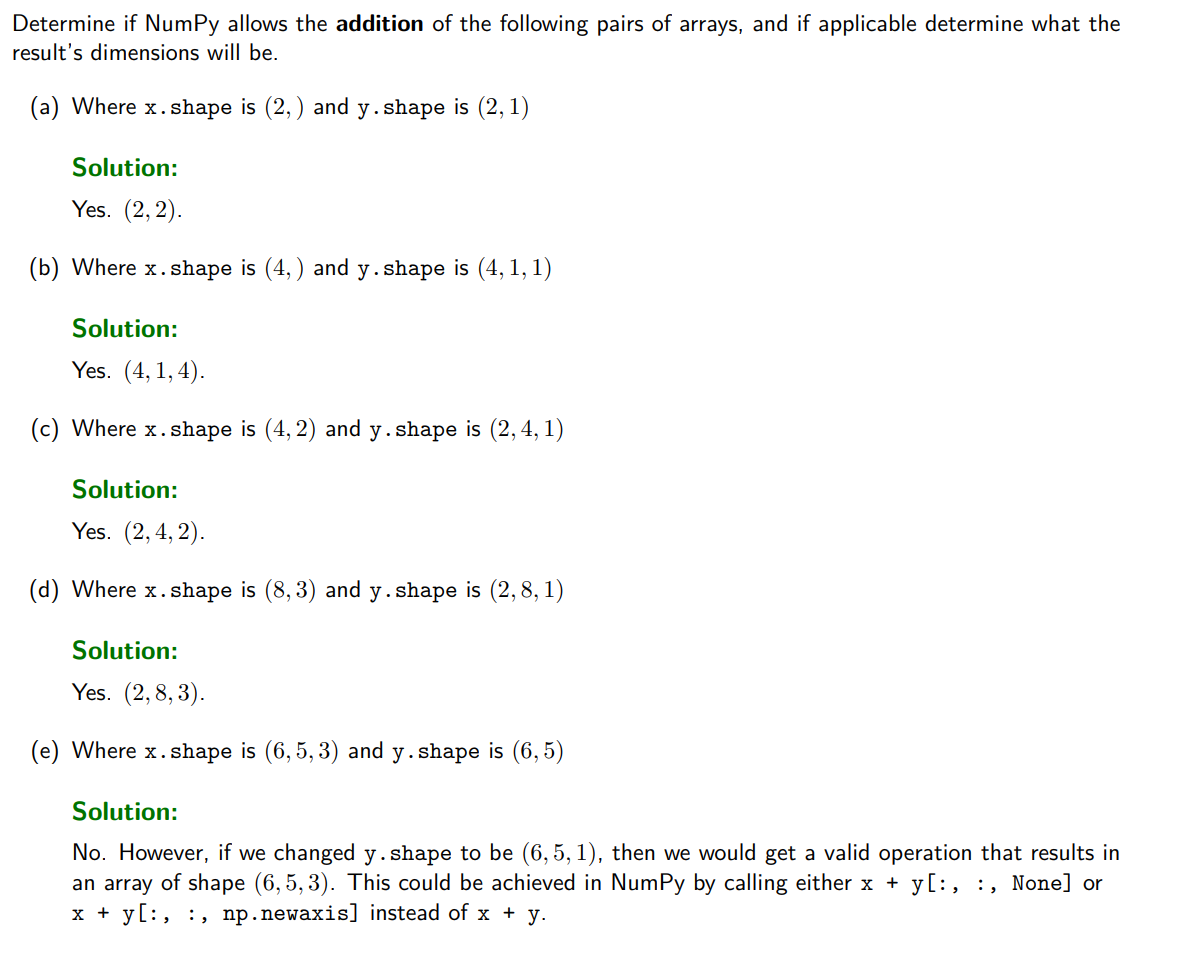 If the shape of the two arrays does not match in any dimension, the array with shape equal to 1 in that dimension is stretched to match the other shape.