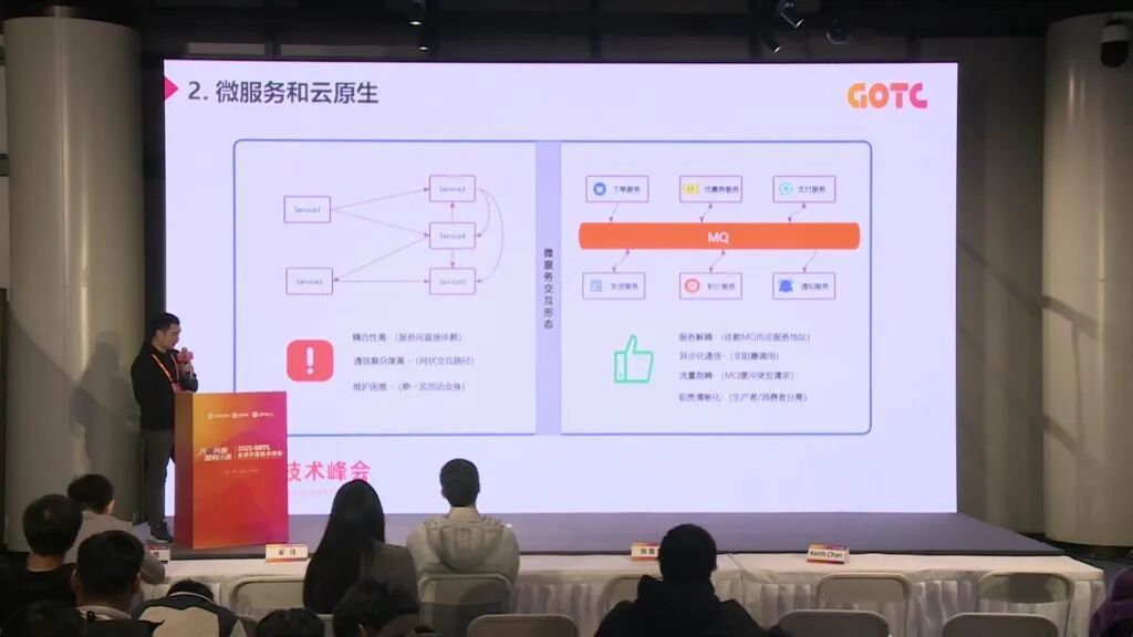 传统服务间通过 IP/端口直接调用,形成复杂的网状依赖。而微服务架构通过消息队列实现间接通信,服务间仅依赖消息契约而非具体实例地址,生产者与消费者角色分离使职责更清晰。例如,腾讯计费平台在处理游戏装备购买、红包发送等金融业务时,即通过消息队列保障数据一致性。这种模式有效应对了服务数量增长带来的通信复杂度指数级上升、618、双11 等突发流量缓冲,以及系统维护时避免级联影响等核心挑战。