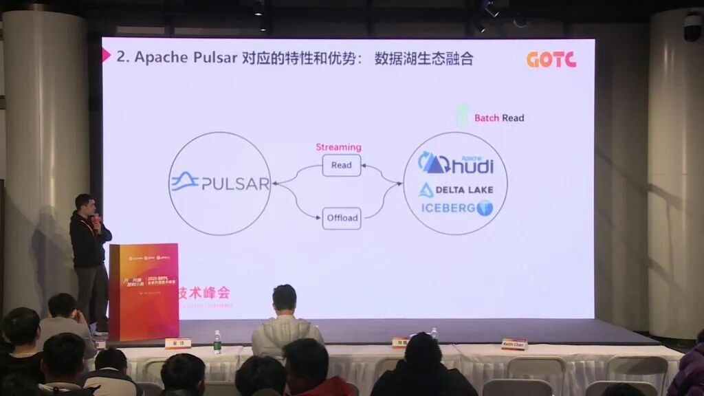 在数据架构层面,Pulsar 实现了与数据湖生态的深度融合。Pulsar 支持双模访问,通过 Connector 模式可实时对接 Apache Hudi、Delta Lake、Iceberg 等数据湖格式;通过 Offload 模式可将历史数据自动卸载为数据湖格式,并保留原始 Schema。这实现了统一存储,单份数据可同时支持通过 Pulsar 的流式访问和通过数据湖的批处理。该架构的前瞻性已获得 VLDB 2023 最佳工业界论文奖的认可。
