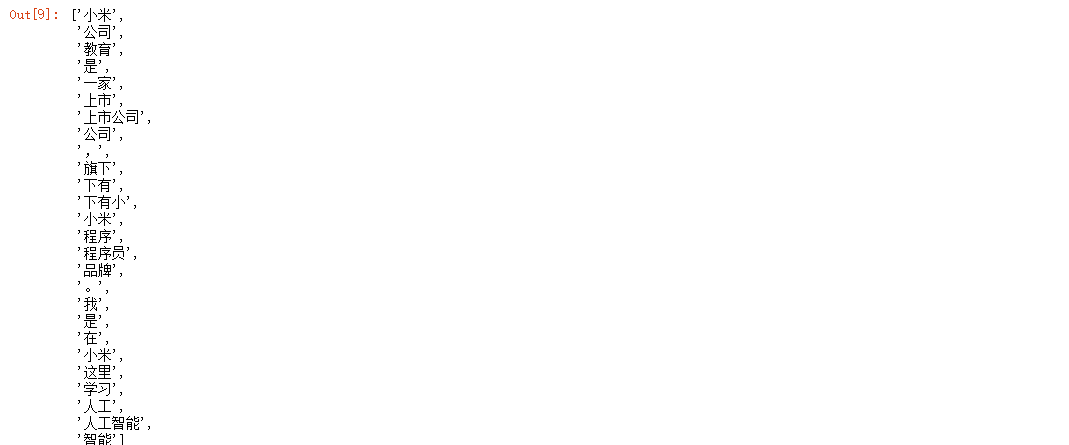 ['小米', '公司', '教育', '是', '一家', '上市公司', ',', '旗下', '有', '小米', '程序员', '品牌', '。', '我', '是', '在', '小米', '这里', '学习', '人工智能']