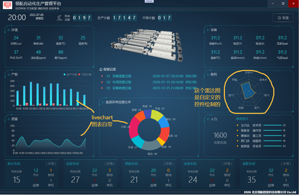 - 高性能与实时性:基于 DirectX 渲染,比 WinForm 更流畅,能高效处理设备实时上报的海量数据(如每秒数百条的设备状态数据)。