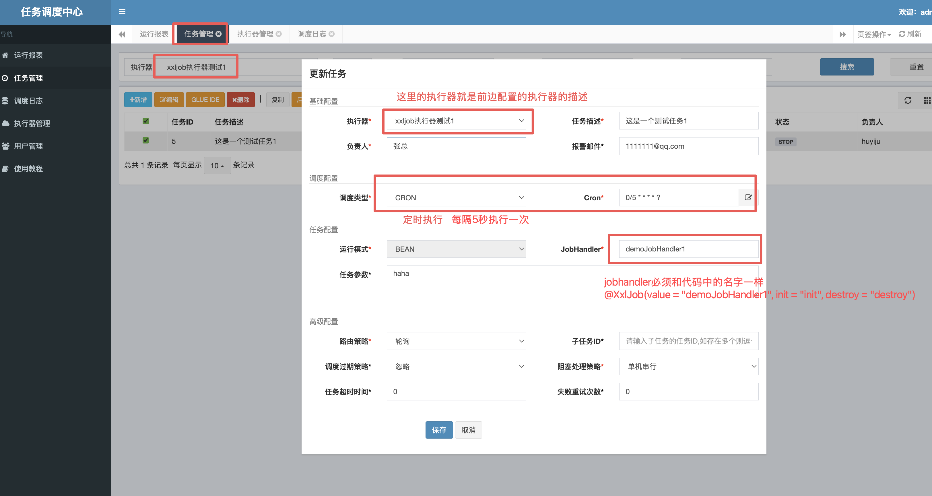 4:在调度中心配置