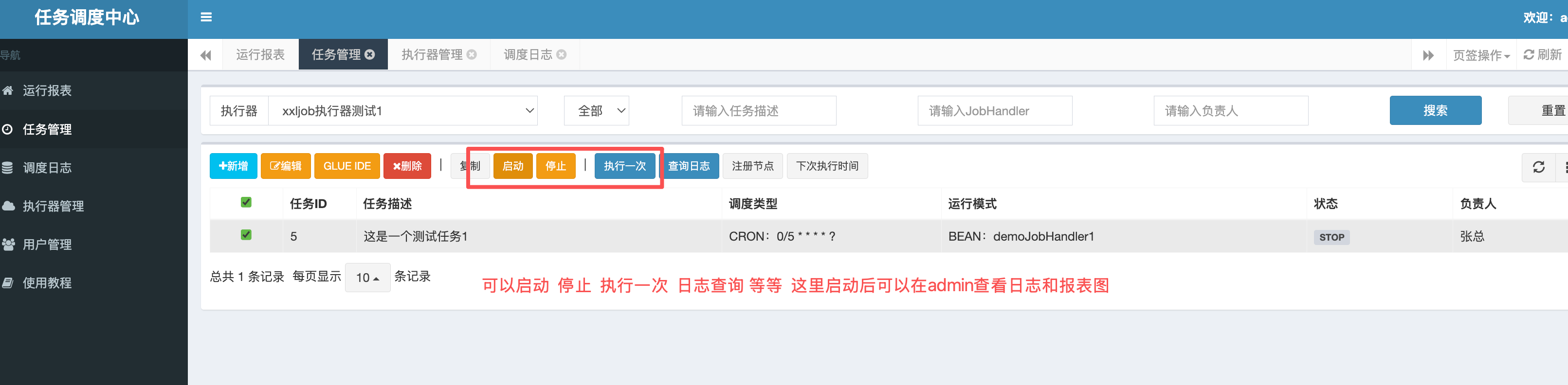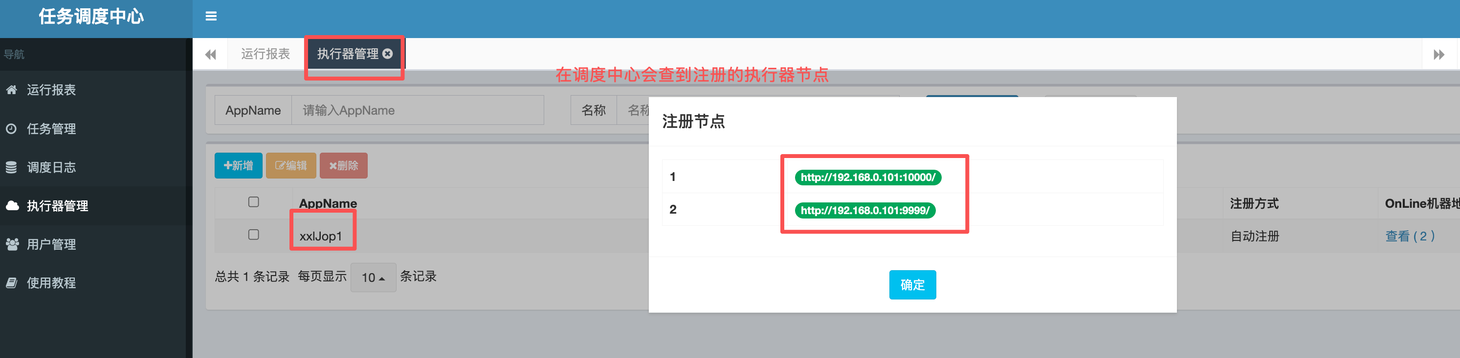 这是的调度中心只有一个,执行器也是只有一个仅仅只作为案例演示