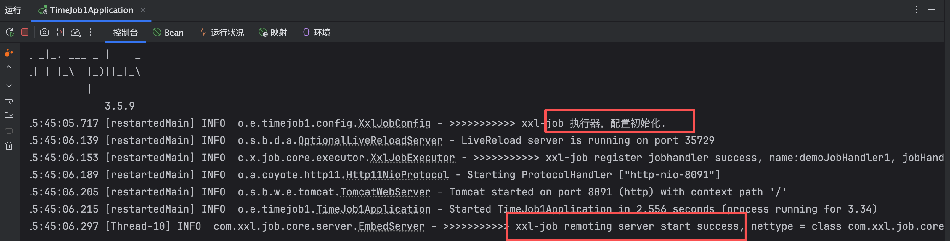 logger.info("TimeJob1 执行器8091端口的MyJobHandlerBean1, init.");