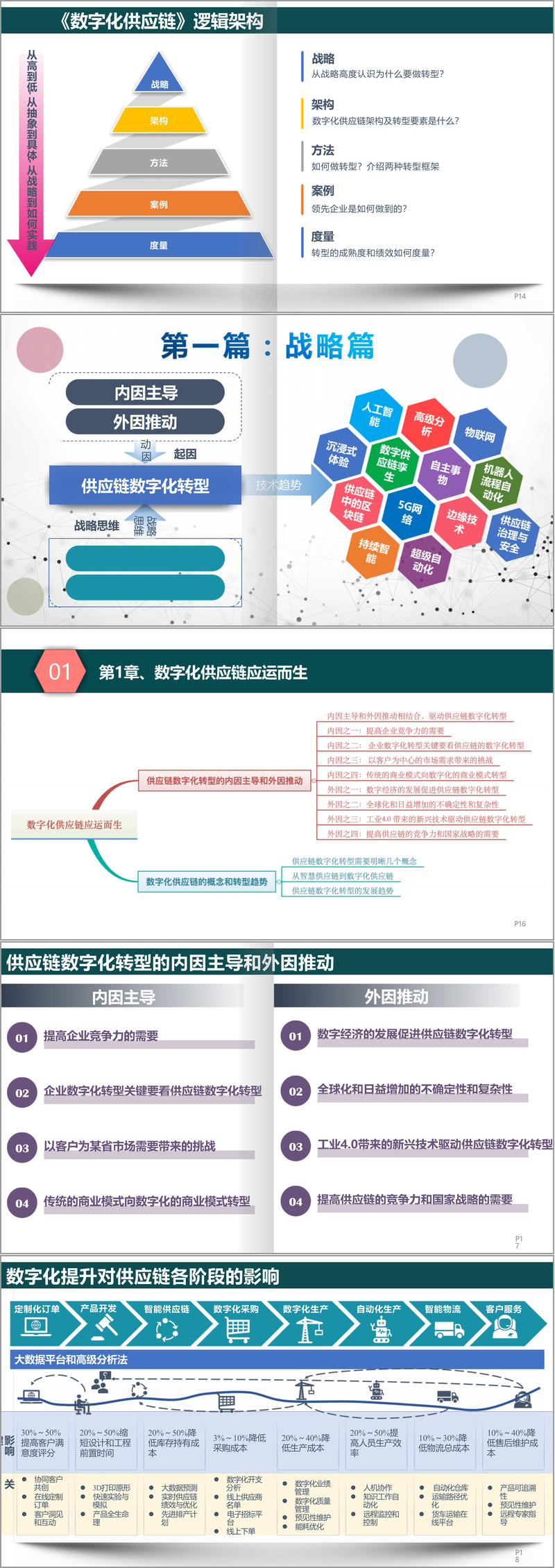 数字化供应链转型是数字经济时代企业发展的必然选择,其核心在于通过技术创新与战略重构,实现供应链从传统线性模式向动态网状生态的变革。这份资料系统阐述了转型的全维度体系,涵盖战略、架构、方法、案例与度量五大核心板块,为企业提供了可落地的行动指南。