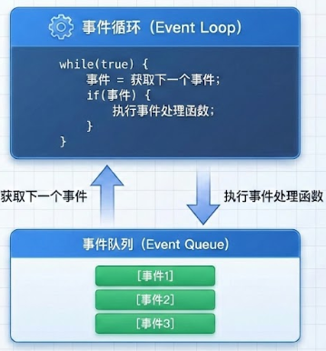 事件循环是不断检查并处理事件的无限循环,是单线程异步系统(如Node.js、浏览器)的核心。