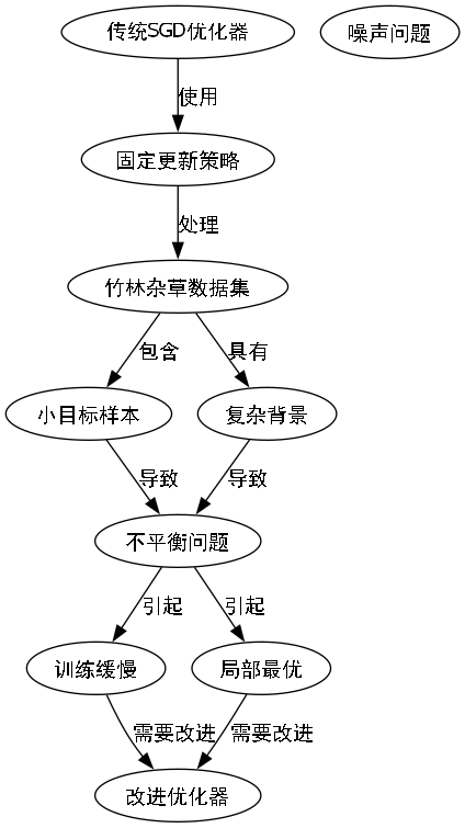 其中, θ \theta θ是模型参数, η \eta η是学习率, J ( θ ) J(\theta) J(θ)是损失函数。这种固定的更新策略在面对竹林杂草数据集时显得不够灵活。竹林杂草数据集包含大量小目标样本,且背景复杂多变,传统SGD优化器难以有效处理这种不平衡和噪声问题,导致训练过程缓慢且容易陷入局部最优。