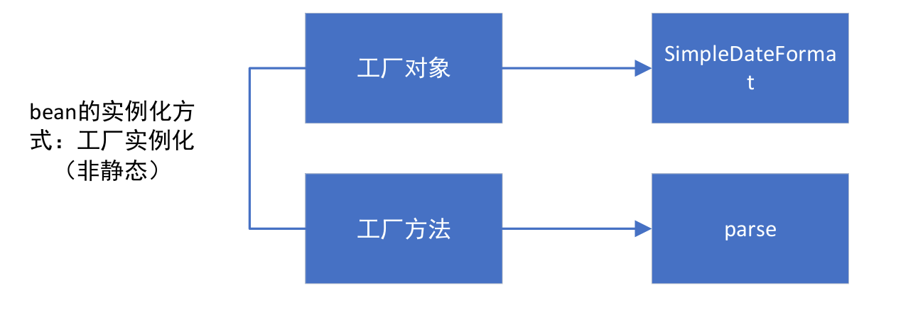 <bean class="java.util.Date" id="date" factory-bean="simpleDateFormat" factory-method="parse">