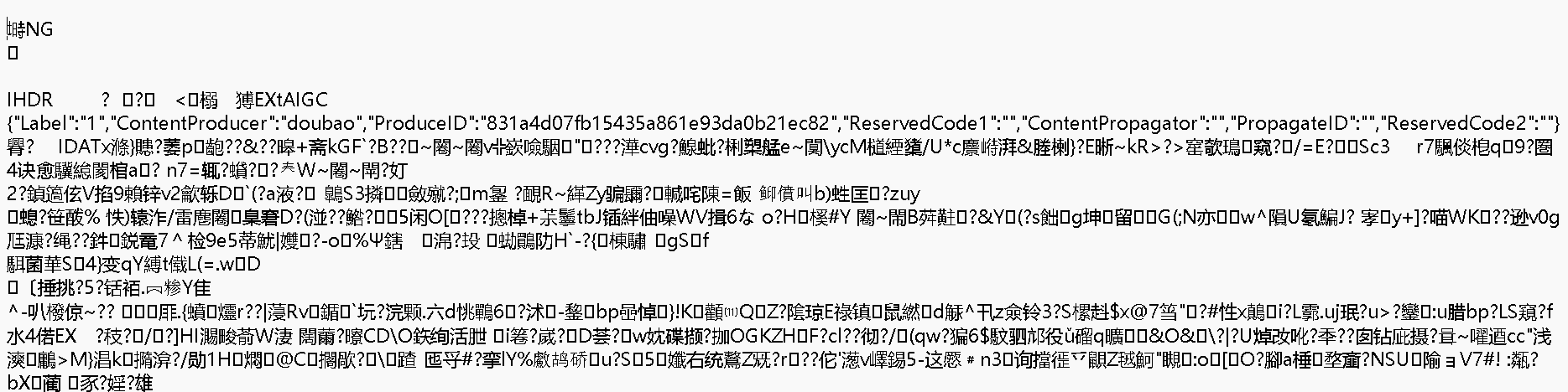 比如我们熟知的.jpg格式的图片文件就是二进制文件,记事本打开就会呈现出下面的乱码