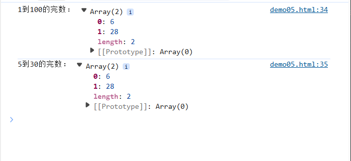 console.log("5到30的完数:", findPerfectNumbers(5, 30));