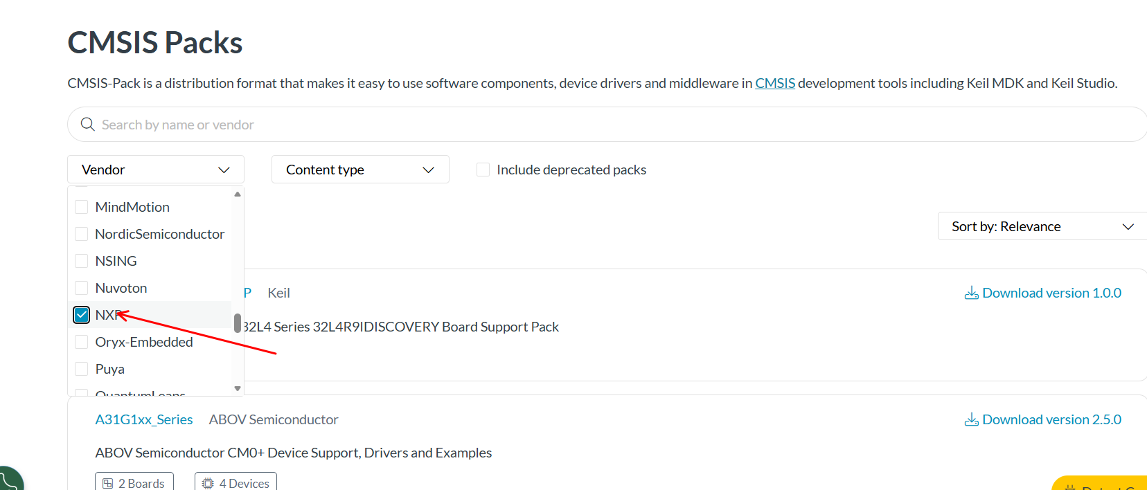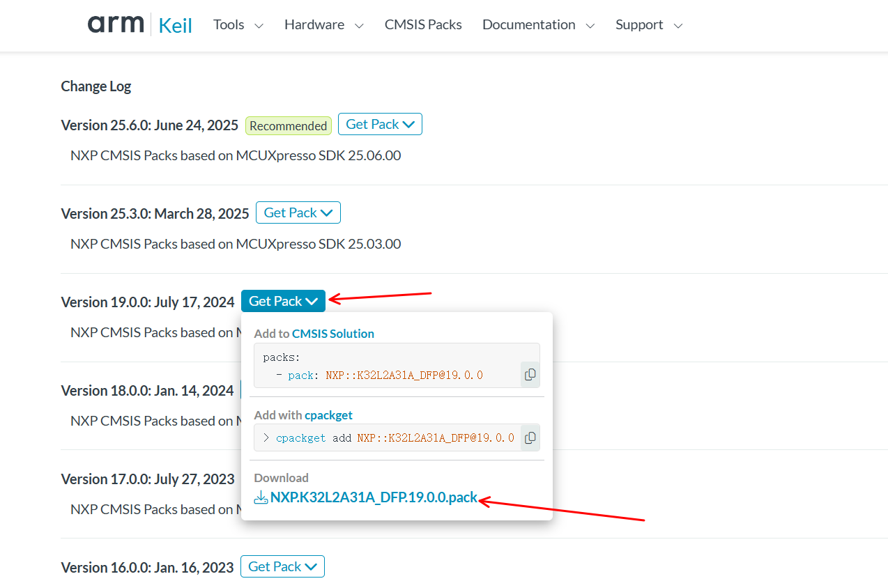点这个,尽量不要直接下载,不同版本keil不一定兼容