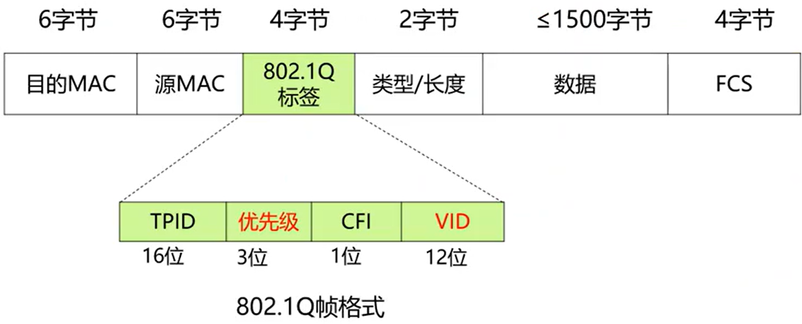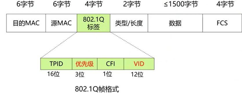 - 802.1Q标签字段(VLAN实现机制基于此字段),重点掌握PRI和VID。