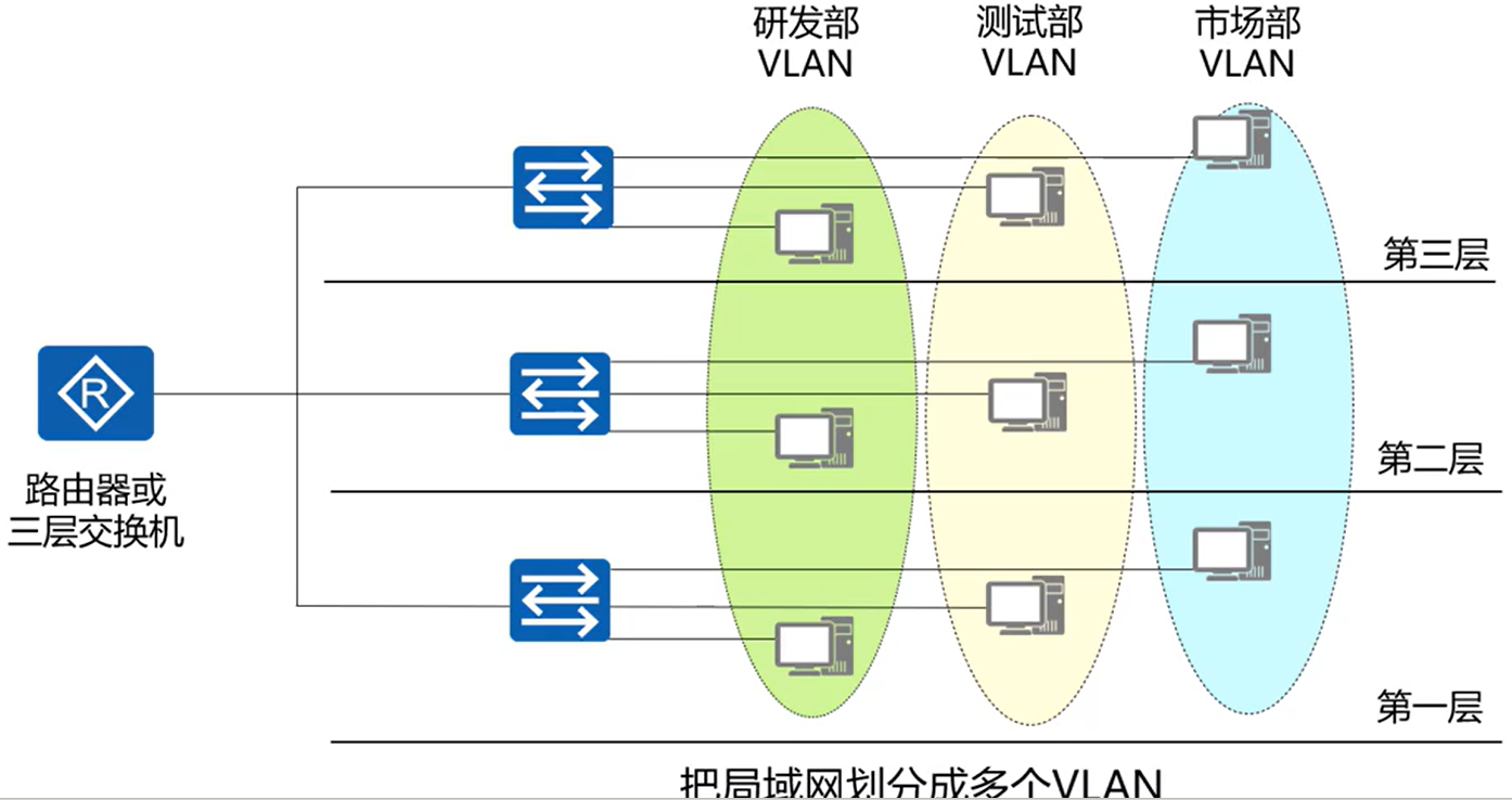 - 根据管理功能、组织机构或应用类型对交换局域网进行分段而形成的逻辑网络。