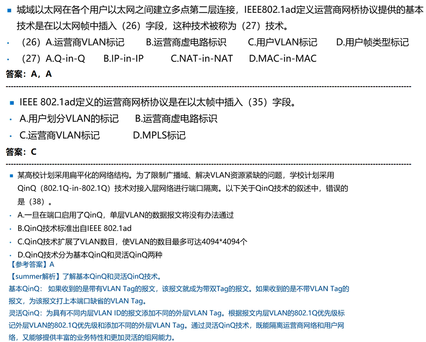 - QinQ分为基本QinQ和灵活QinQ。