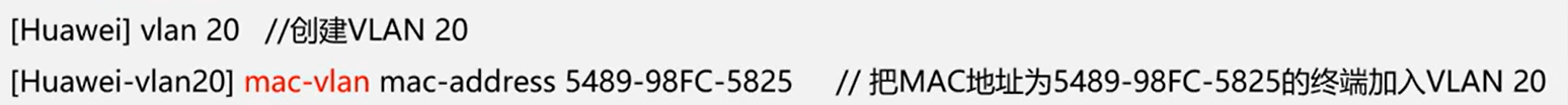 1)基于MAC地址进行VLAN划分配置: