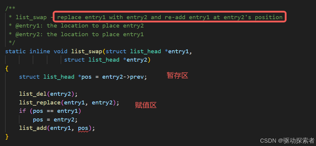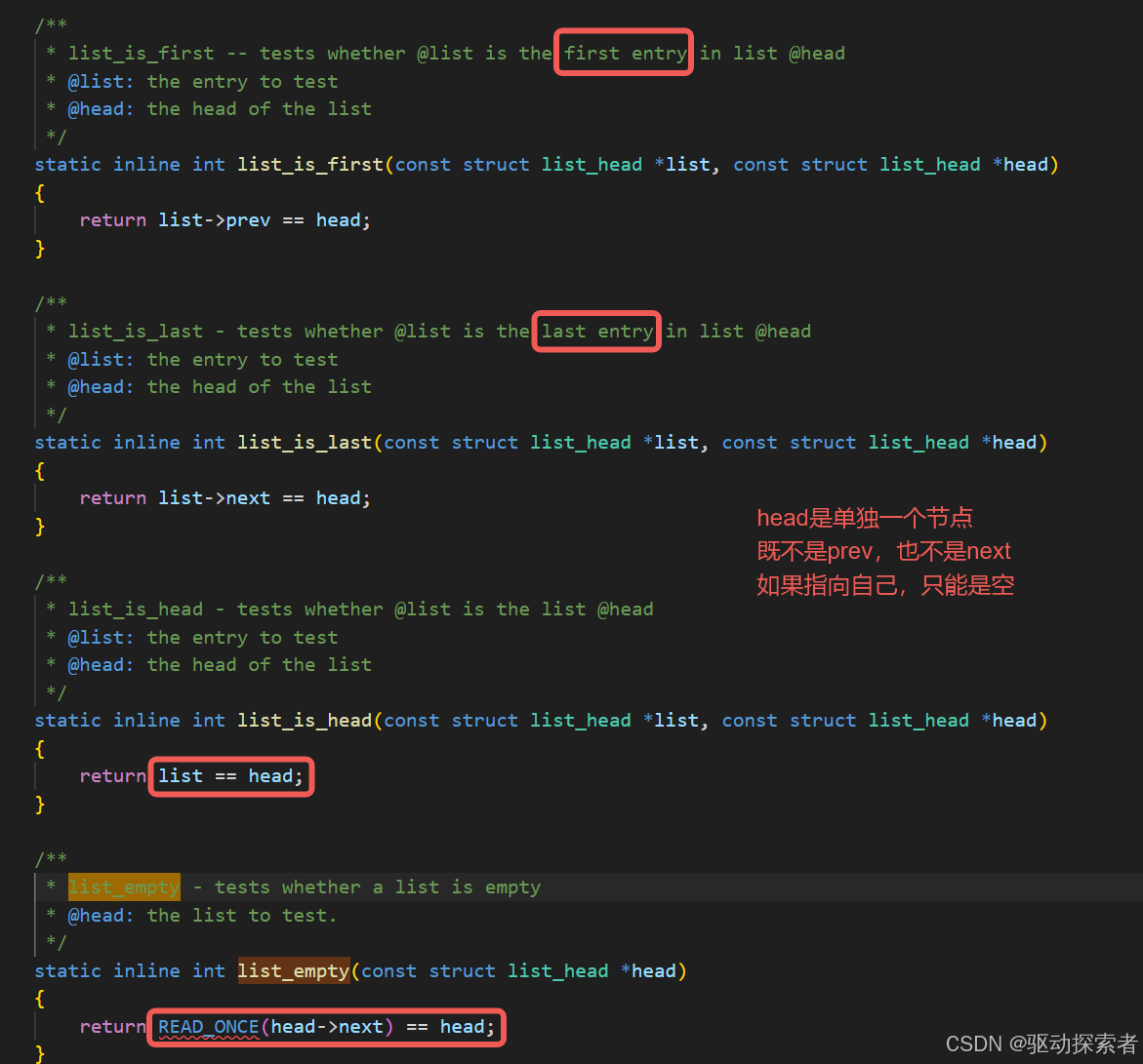 list_is_first(entry, head):是否为首元素 -