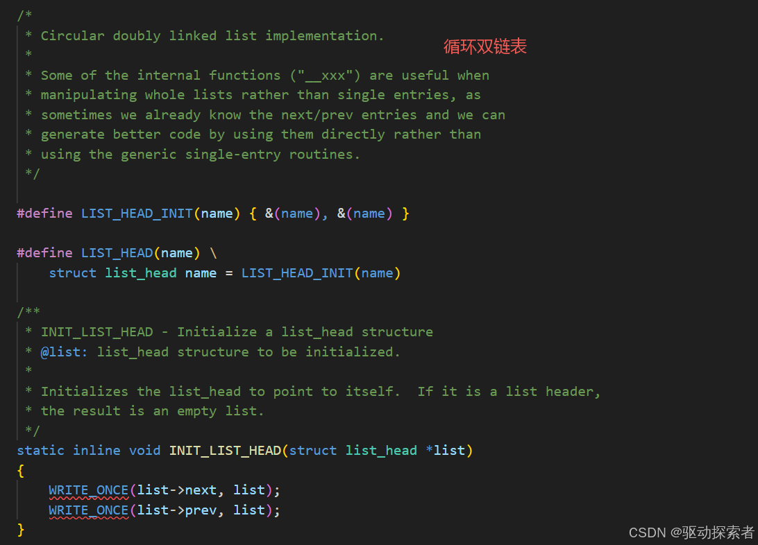 INIT_LIST_HEAD(struct list_head *list)这两个名字还挺绕的