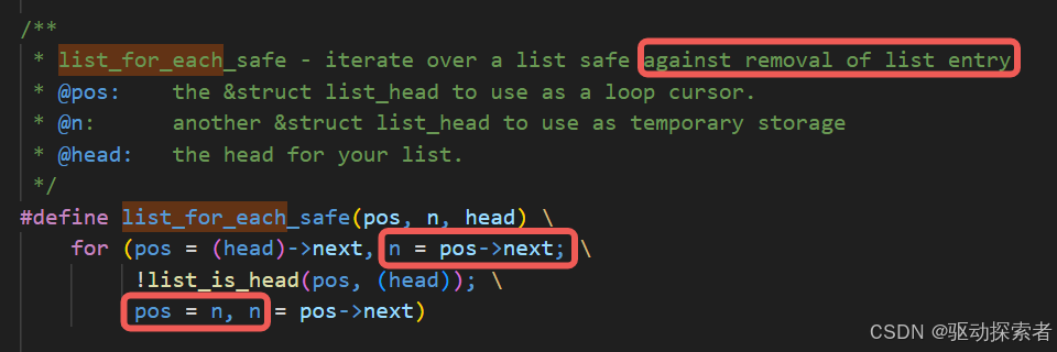 list_for_each_safe(pos, n, head) -