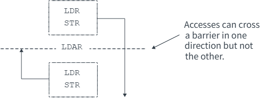 - 将先于所有在体系结构上要求在该 Load-Acquire 之后发生的对外设的内存访问,