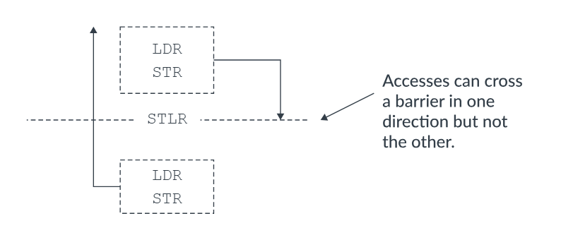 - 对外设内存区域中某地址执行 Store-Release,可确保所有在体系结构上要求在该 Store-Release 之前被观测到的、使用 Device 内存类型的对外设的内存访问,将在该 Store-Release 的内存访问之前到达该外设。