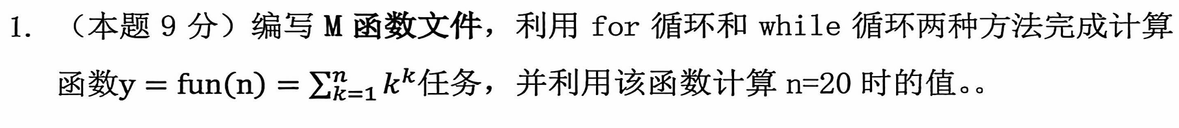 第一题:M 函数实现 for/while 循环计算