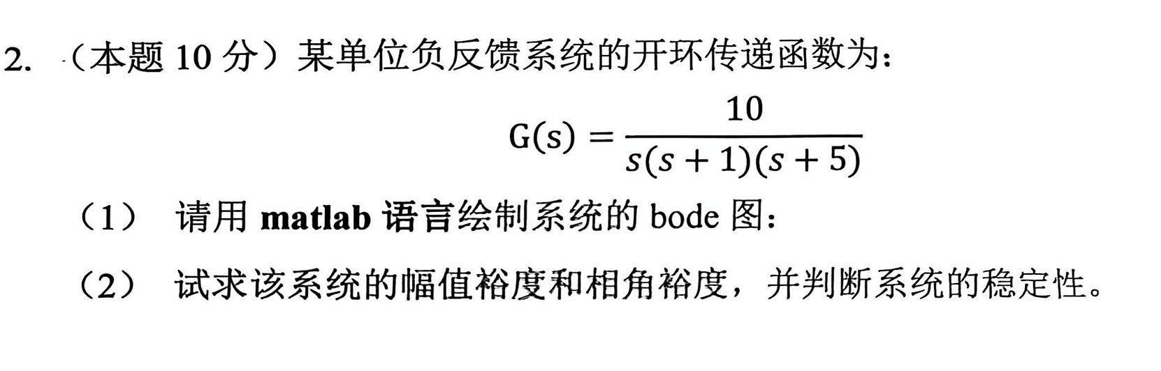 margin()函数提取幅值裕度 (Gm)和相角裕度(Pm)(稳定裕度是判断系统稳定性的核心指标); - 判断稳定性 :若相角裕度Pm>0° 且幅值裕度Gm(dB)>0dB,系统稳定;否则不稳定。