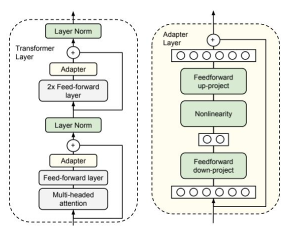 Adapter Tuning是PEFT领域的开创性工作之一,由 Google 在 2019 年为BERT模型设计。
