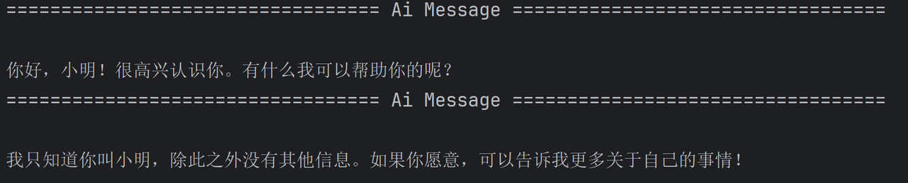 从结果可知,只要将历史消息,重新发送给聊天模型,那么就可以实现多轮对话的功能。
